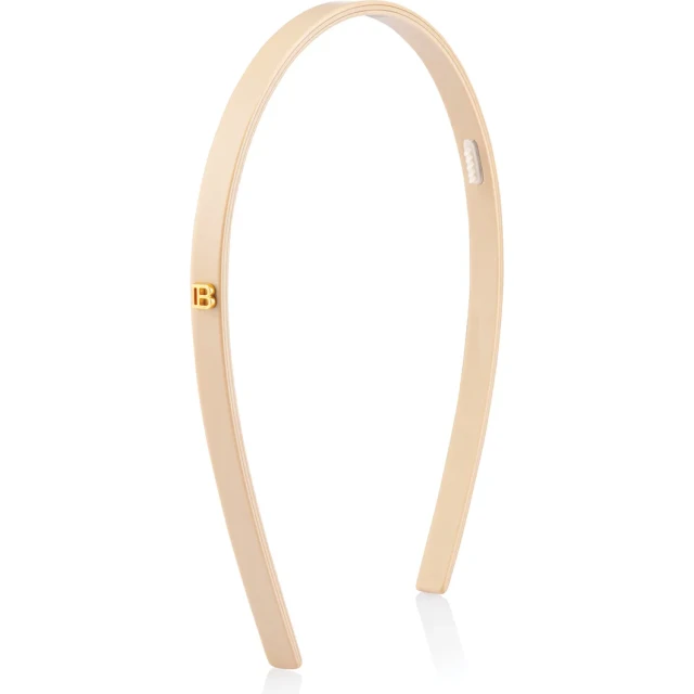 This luxurious, handcrafted headband from Balmain Hair Couture is made from durable beige cellulose acetate with elegant ivory edges, featuring an 18K gold-plated "B" logo for a refined designer touch.