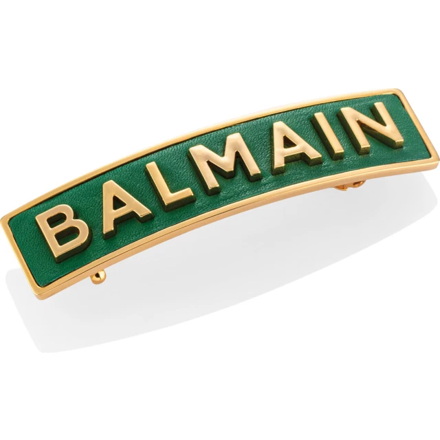This luxurious, handcrafted barrette from the Balmain Hair Couture Les Accessoires collection features durable acetate, a 14K gold-plated logo, and a sturdy French clip for a secure, damage-free hold.