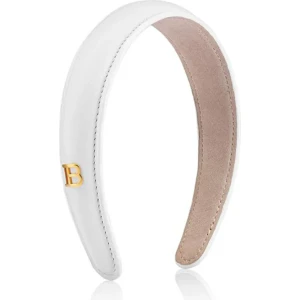 This luxury hair accessory from Balmain Hair Couture is handcrafted from high-quality Napa leather with a distinctive padded silhouette, featuring an 18K gold-plated signature logo and a soft nubuck lining for comfort and grip.