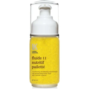 Linda Kristel Fluide 11 Nutritif Pailette is a luxurious multi-purpose nourishing oil from the Nutritif line, designed to provide deep hydration for face, body, and hair while leaving a subtle, shimmering golden glow.