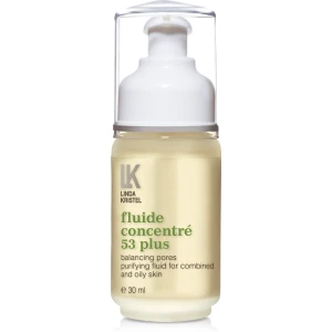 Linda Kristel Fluide Concentré 53 Plus is a 30 ml skincare fluid formulated to help purify pores and manage oily or combination skin types. Designed as a treatment serum rather than a daily moisturizer, it is recommended for targeted use when skin needs intensive balancing support, such as during hormonal fluctuations.